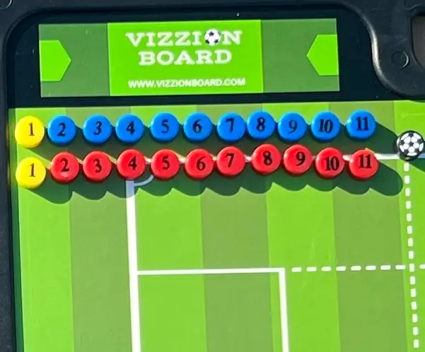 Vizzionboard Magnets are the same size and shape as the original magnets that are shipped with Vizzionboard. Having an extra set on hand is always a good idea and they’ll keep you coaching just in case you misplace the one. There are 23 magnets in each set, which includes 10 blue magnets numbered 2-11, 10 red magnets numbered 2-11, 2 yellow magnets both numbered 1, and 1 black magnet which is the ball.